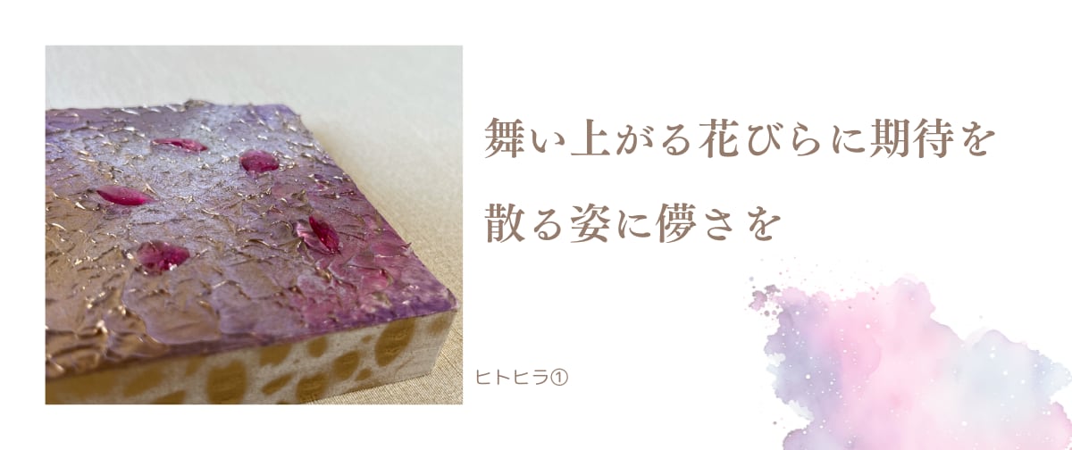 メッセージは「その愛を知る」 【私は、愛されていた】事に気が付く事は、孤独の終わりと、感謝に満ちた新しいはじまり。 この作品を飾ることで、あなたに届けたい3つの変化 【孤独からの解放】 ずっと消えなかった心の空洞が、春の陽だまりのような温かさで満たされていきます。 【過去との和解】 後悔やわだかまりが「感謝」へと形を変え、大切な記憶とともに穏やかに生きていけるようになります。 【生命への感謝】 「自分がここに居ること」の奇跡を実感し、今ある命を愛おしく思えるようになります 〈制作エピソード〉 桜が教えてくれた、不器用で尊い「理解」という和解の形 「自分は誰からも愛されていない」 長い間、私はそんな深い孤独感を抱えて生きてきました。過敏な気質ゆえに、相手の気持ちを察することが当たり前だった私にとって、「自分のことも理解してもらうのが当たり前」だと思い込んでいたのです。 一番近い存在に理解されない孤独。 それは、血の繋がった両親。 けれど、両親が旅立った後にようやく気がつくのです。 「理解」とは、お互いの違いを知ろうと努めること。言葉足らずでも、形が歪でも、そこには確かな「愛」があったのだと。 桜の花が舞う景色を見るたび、私は両親を思い出します。 自分が生まれたことの奇跡、そして今、ここで生きていることの有り難さ。 「上手に受け取れなかったけれど、私はちゃんと愛されていた」 そんな、眩しすぎるほどに優しい記憶を、散ることのない桜の風景に託しました。 〈色彩心理〉 (ピンク)依存心・無償の愛 (紫)鎮静・癒し (赤紫)愛・成熟 この作品は2枚あります。 同じテーマで描かれた2枚の作品は、それぞれに異なる「心の揺らぎ」を映し出しています。 心がふと寂しさに震える夜、この桜を眺めてみてください。 あなたは決して、一人ではありません。その愛に気づいたとき、あなたの世界には、春の風が吹き抜けるはずです。 「ヒトヒラ」制作ストーリー https://note.com/turehotalu/n/nf656bd27b4fb 2025年制作 (作品サイズ)100×100×20㎜ (使用画材)アクリル絵具/モデリングペースト/ラッカースプレー/レジン/木製パネル *吊り金具なし(お好きな向きで飾ってください) *作品証をお付けします *原画につき1点限りです *保存箱なし。厳重に梱包発送いたします (テクスチャーアートについて) ①テクスチャーアートとは、絵の具とメデュームを使って絵肌や質感、凹凸を表現した絵画です。ほこりなど取る場合は柔らかい布で優しくふき取ってください。 ②テクスチャーアートは絵の具の性質上、乾燥時にひび割れが生じる事があります。そのひび割れを作品の効果として制作しています。 ③作品によって細かいラメなど使用しています。使用後に接着強度を何度か試していますが繊細なモノなので優しく扱っていただけると嬉しいです。 ④作者のサインですが、作品の世界観を壊さない様に表面ではなく裏にサインをしています。画面隅々まで鑑賞していただくと幸いです。 ⑤作品制作の中、レジンで作った固体やレジン液を硬化して使用している場合は、支持体強化の為にキャンバスの裏にジェッソを塗布して目止めをしています。 ⑥保存場所は直射日光を避け、風通しの良い場所がおすすめです(湿気対策など) ⑦作品の裏に絵の具やスプレーの跡が付いている場合がありますが、【制作の痕跡】として残しているのでご了承ください。 ⑧テクスチャーアートは凹凸があり、霧状の絵の具を吹きかける事で繊細な変化を見せます。日々の中、生活の一部として見て頂けると幸いです。