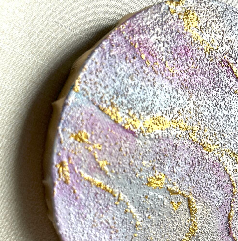 ⑧テクスチャーアートは凹凸があり、霧状の絵の具を吹きかける事で繊細な変化を見せます。日々の中、生活の一部として見て頂けると幸いです。