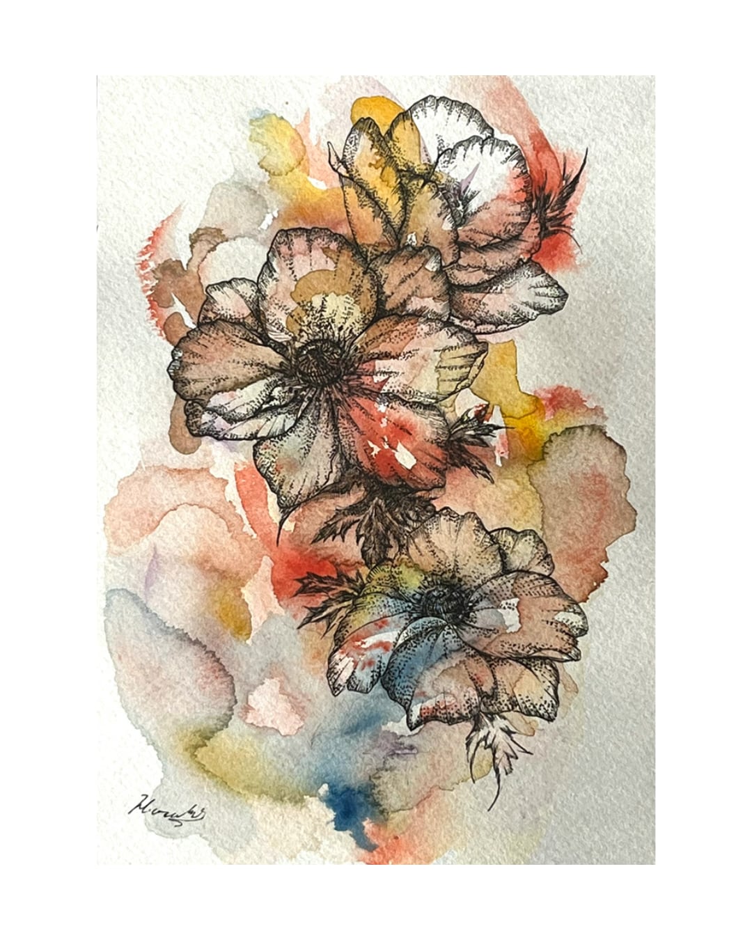 使用画材:水彩絵具・ドローイングペン・ワトソン紙