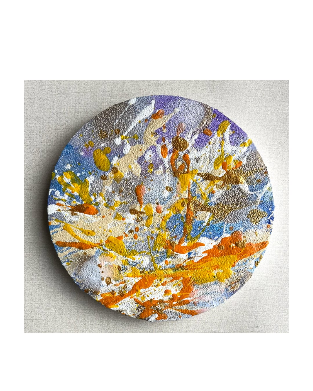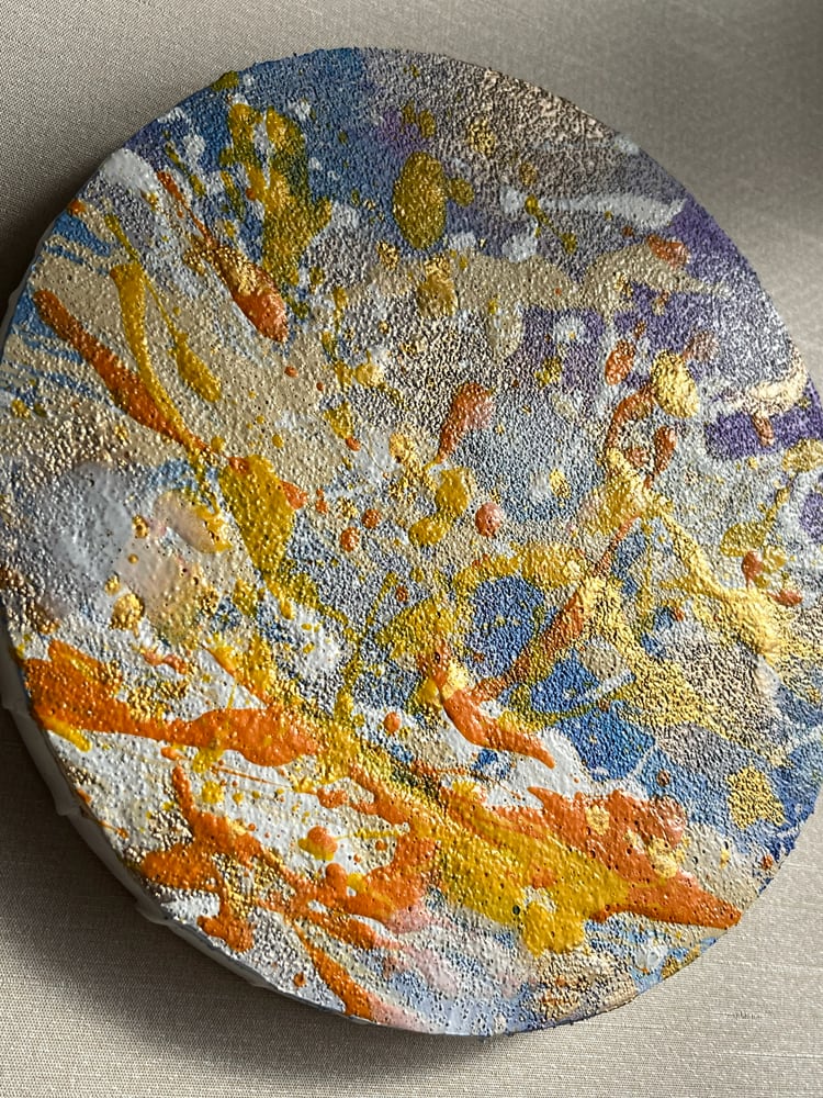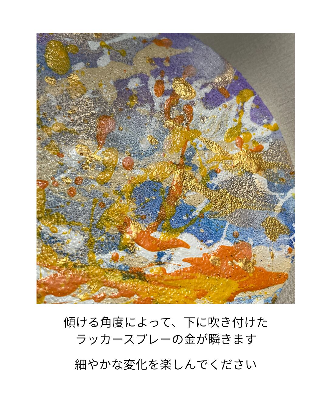使用画材:アクリル絵具・モデリングペースト・大理石の粉・ラッカースプレー・丸キャンバス