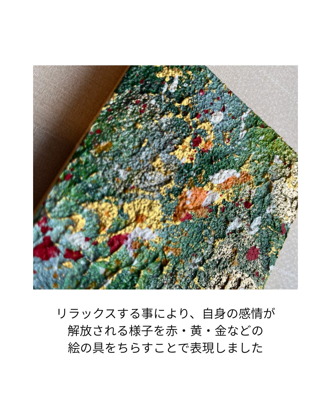 ⑧テクスチャーアートは凹凸があり、霧状の絵の具を吹きかける事で繊細な変化を見せます。日々の中、生活の一部として見て頂けると幸いです。